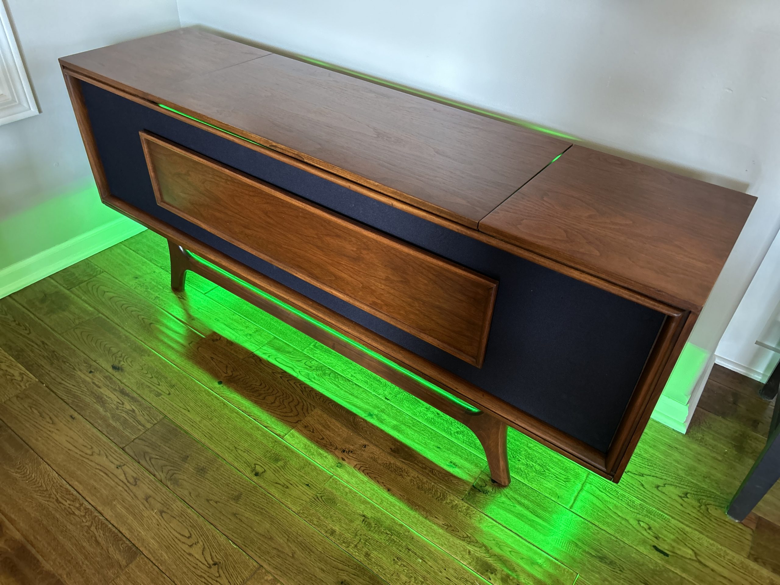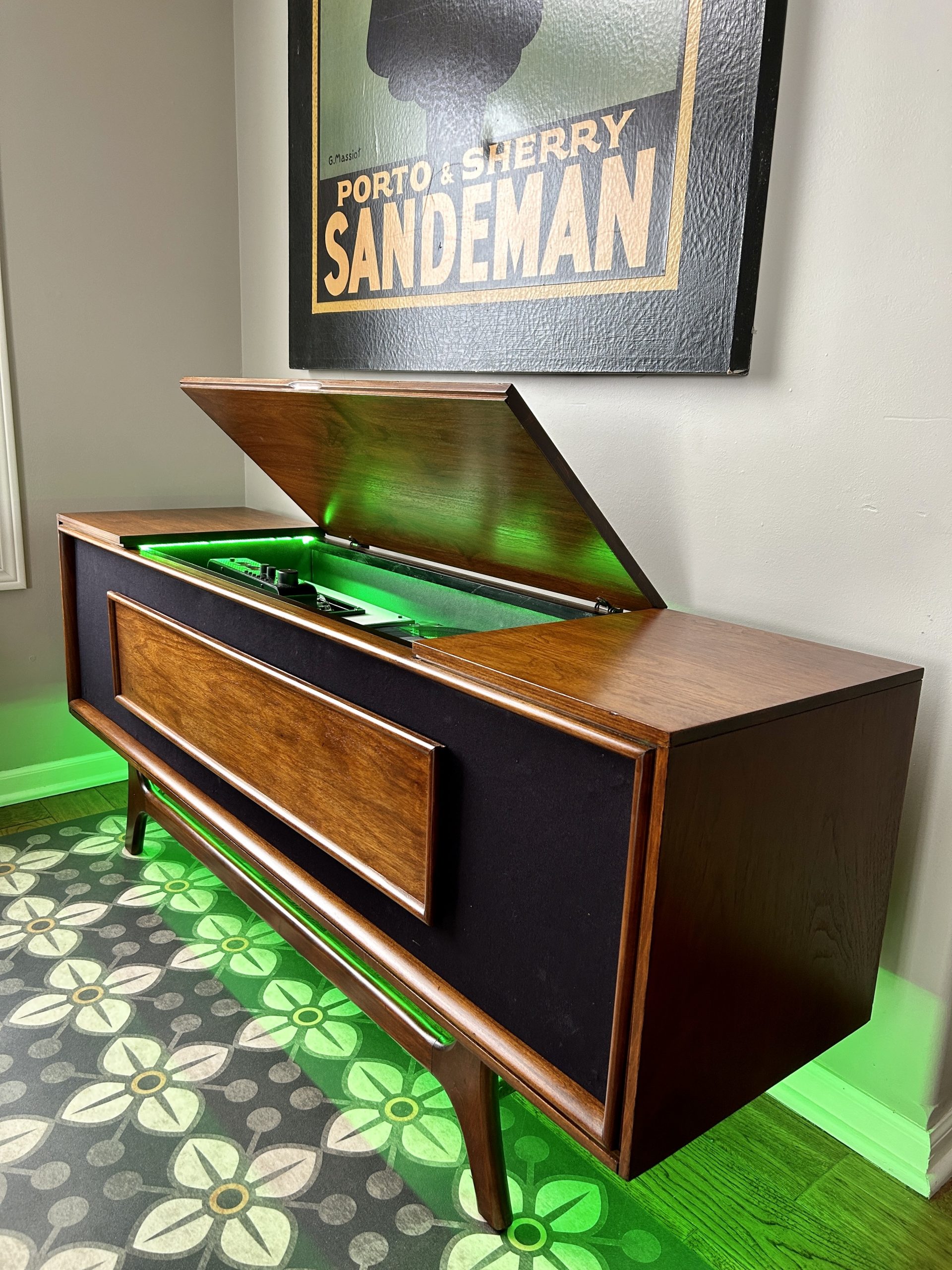 Housed in a fully refinished walnut cabinet, this piece brings the craftsmanship of the 1960s into the present with premium upgrades that blend seamlessly into its original aesthetic. It’s functional furniture that sounds as good as it looks.