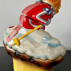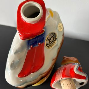Discover a unique vintage treasure with this Vintage Idaho Downhill Skier on a Baked Potato Decanter from 1972 by Ezra Brooks. Crafted in porcelain, this decanter is a one-of-a-kind collectible that will surely captivate the attention of vintage enthusiasts and collectors.
