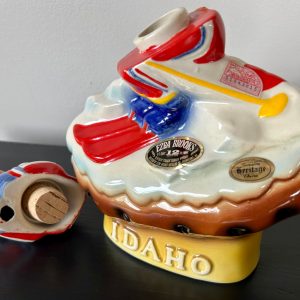 EZRA BROOKS Whiskey Decanter IDAHO Downhill Skier on Baked Potato – 1972.