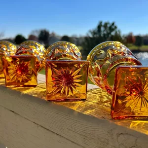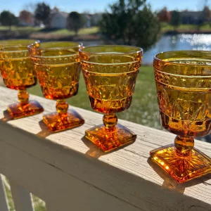 These beautifully crafted Anchor Hocking in Georgian Amber Honey Comb pattern tumbler/ rocks glasses will look beautiful at your holiday or wedding table.