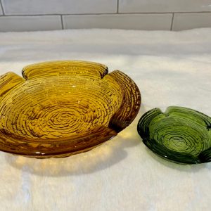 These beautiful ashtrays make great gifts. They work well for jewelry/trinket holders, catch-all’s, or for candles and incense.