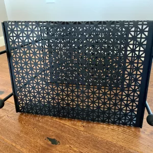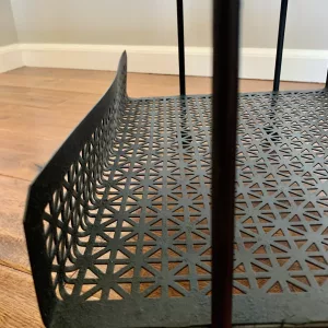 Vintage rare black atomic era magazine/smoking stand /quatrefoil design metal/plant stand/ metal mesh magazine rack/retro MCM tiered stand