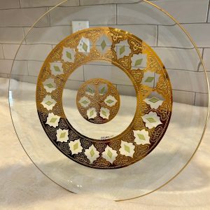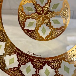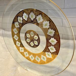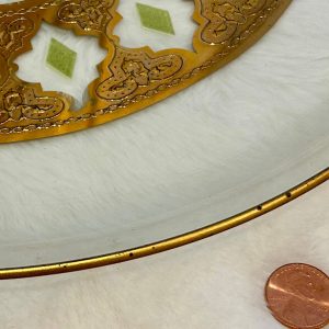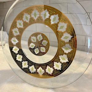 The 22k gold accents shimmer with a warm and inviting glow, enhancing the overall luxurious aesthetic. This vintage serving platter is not only a functional piece but also a collector’s item that adds a touch of vintage charm to your serveware collection.