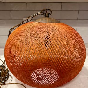 Elevate your space with this captivating Vintage Orange Spun Lucite Fiberglass String Swag Hanging Lamp. With its retro charm and eye-catching design, this round chandelier will become the focal point of any room. The vibrant orange spun lucite shade creates a warm and inviting ambiance, casting a mesmerizing glow when illuminated.