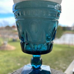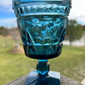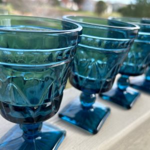 Your table setting will be stunning with this set of Vintage Park Lane Blue Water Goblets by Colony. Perfect for special occasions such as holiday tables and boho weddings, these goblets exude timeless elegance and add a touch of vintage charm to any gathering.
