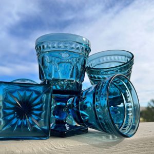 Crafted with meticulous attention to detail, these vintage drinkware pieces feature a captivating blue color that brings a sense of tranquility to your dining experience. The classic design and intricate pattern on the glass showcase exquisite craftsmanship, making them a captivating addition to your vintage tableware collection.