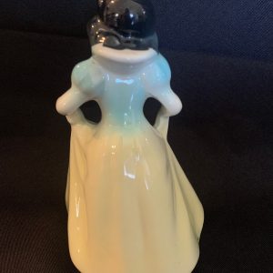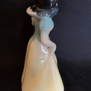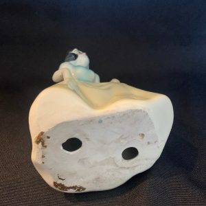 She is wearing her signature pale yellow with pale blue bodice dress, hair band. Her hands hold her dress, she seems ready to dance, her face features bright eyes and smile. Walt Disney productions licensed Leeds China company in Chicago, Illinois to produce these quality banks. Because Leeds did not actually manufacture pottery, they used several pottery companies, such as American Pottery company, Regal China and others in the USA.