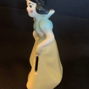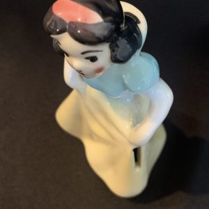 The coin bank is designed to help you save your spare change in style. Simply drop your coins into the slot on the back of Snow White’s head, and when it’s time to retrieve your savings, the rubber stopper at the bottom allows for easy access. This vintage Snow White coin bank is not only a practical item for saving money but also a delightful display piece for your Disney-themed decor.Dimensions: 6.5″x4″x3″