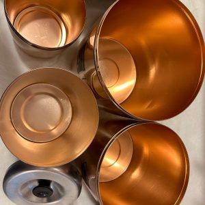 Set of 4 canisters – West Bend copper-look aluminum canister set.